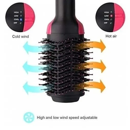 One Step 3 in 1 Hair Dryer Brush that combines a hair dryer straightener and curler in one powerful styling tool. Designed for women who want salon-quality results at home this hot air brush delivers smooth shiny and voluminous hair in minutes.The advanced hot air technology ensures even heat distribution to dry and style your hair quickly without causing damage. Its oval-shaped barrel helps lift hair from the roots and smooth the ends creating a natural voluminous look every time.Equipped with soft detangling bristles this brush glides effortlessly through your hair reducing frizz and leaving a silky smooth finish. The ergonomic lightweight design makes it easy to handle and perfect for both home and travel use.Whether you have straight curly thick or fine hair this 3 in 1 hair dryer brush is your all-in-one styling companion for fast drying safe straightening and effortless curling with long-lasting smoothness and shine.