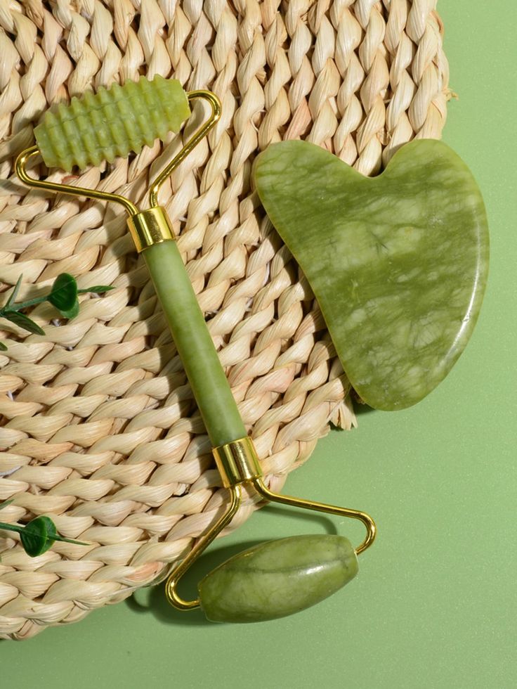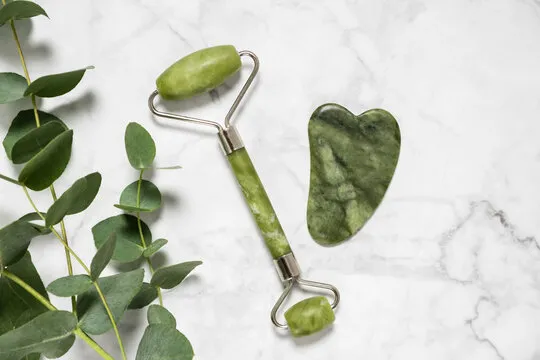 • Face roller and Gua Sha set for anti-aging skincare.